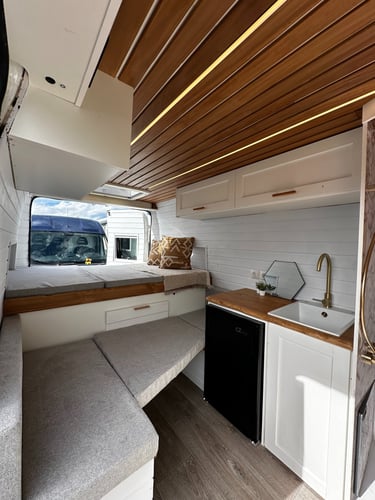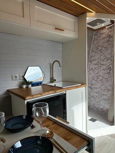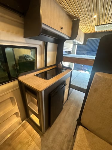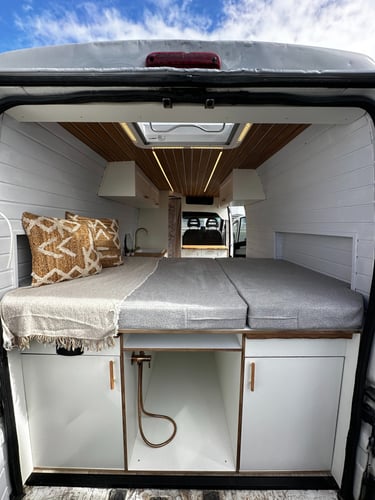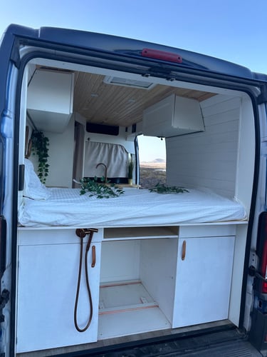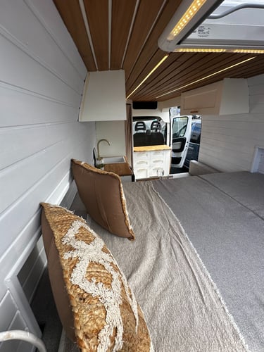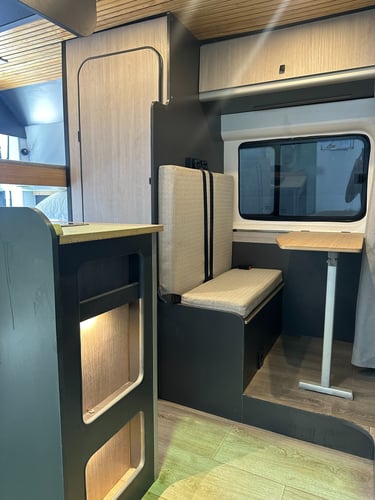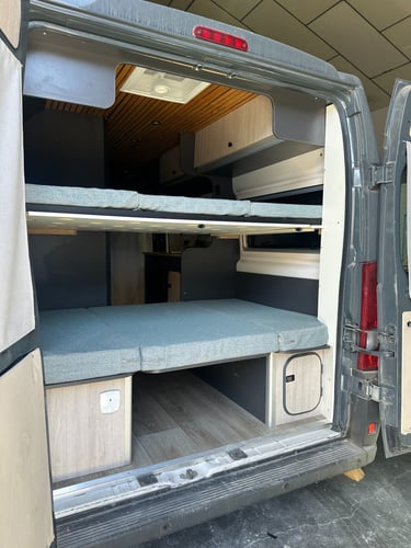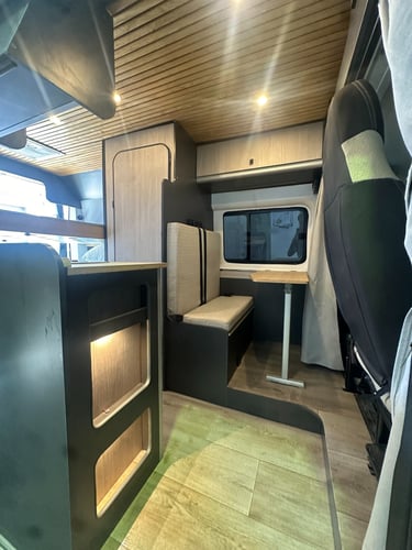 Famara es perfecta para 4 personas, tanto para dormir como para conducir. Con dos camas en litera de 125 cm, asientos delanteros giratorios que forman un salón, y ducha interior y exterior, lo tiene todo para viajar con comodidad y estilo. ¡Listos para rodar!
