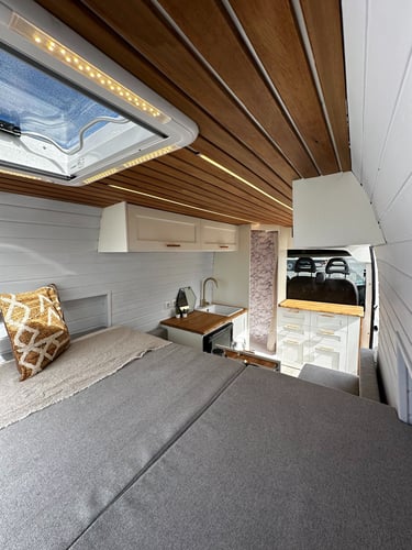 Con sus 5,5m de largo y su cama extensible, hacen de una van perfecta para ser conducida fácilmente y comoda.