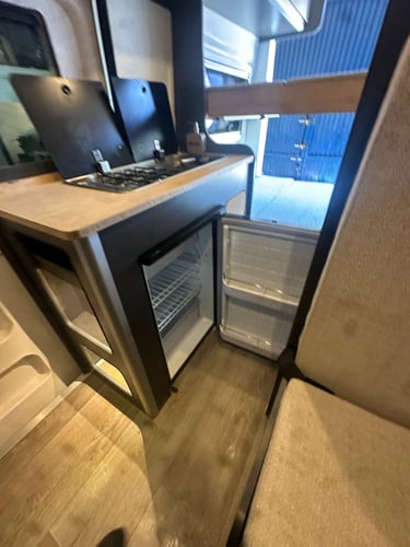 Sotavento está diseñada para 3 personas, con una cama de matrimonio de 132 cm y una individual convertible de 80 cm. Incluye ducha de agua caliente interior y exterior, y su compacto tamaño de 5,5 m la hace fácil de conducir. ¡Lista para cualquier aventura!
